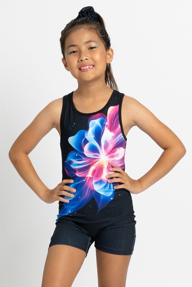 Shiny Flower Pattern Biketard Unitard for Girls