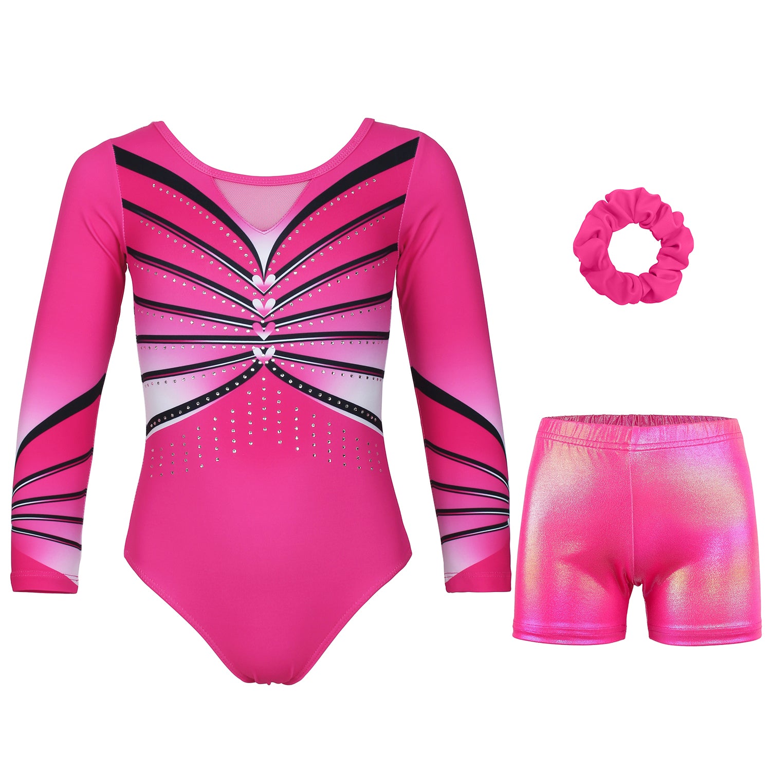 Romantic Heart Diamond Long Sleeve Gymnastics Leotard Set for Girls