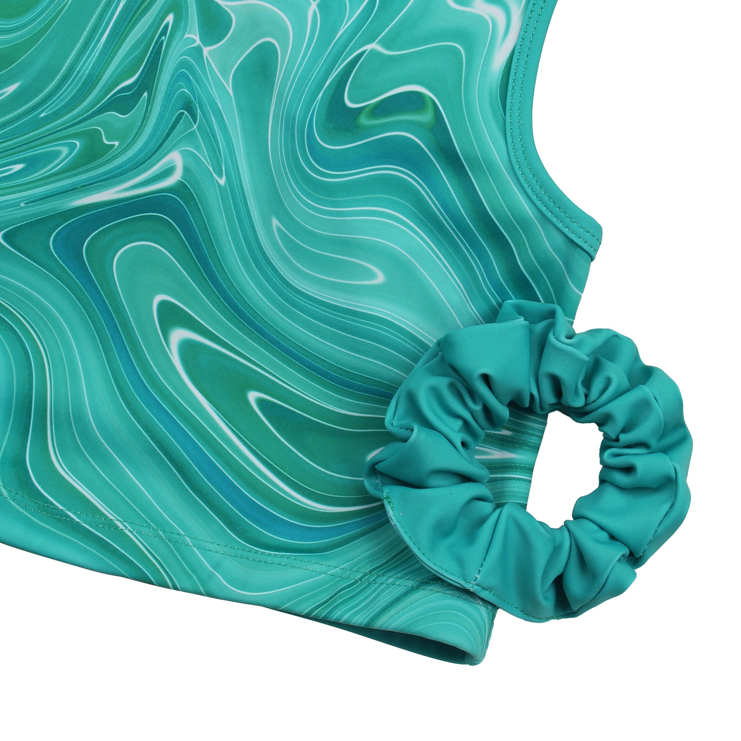 The Turquoise Green Marble Cross Back Unitards for Girls are a charming and stylish piece of clothing, perfect for young girls who want to look fashionable and feel comfortable.