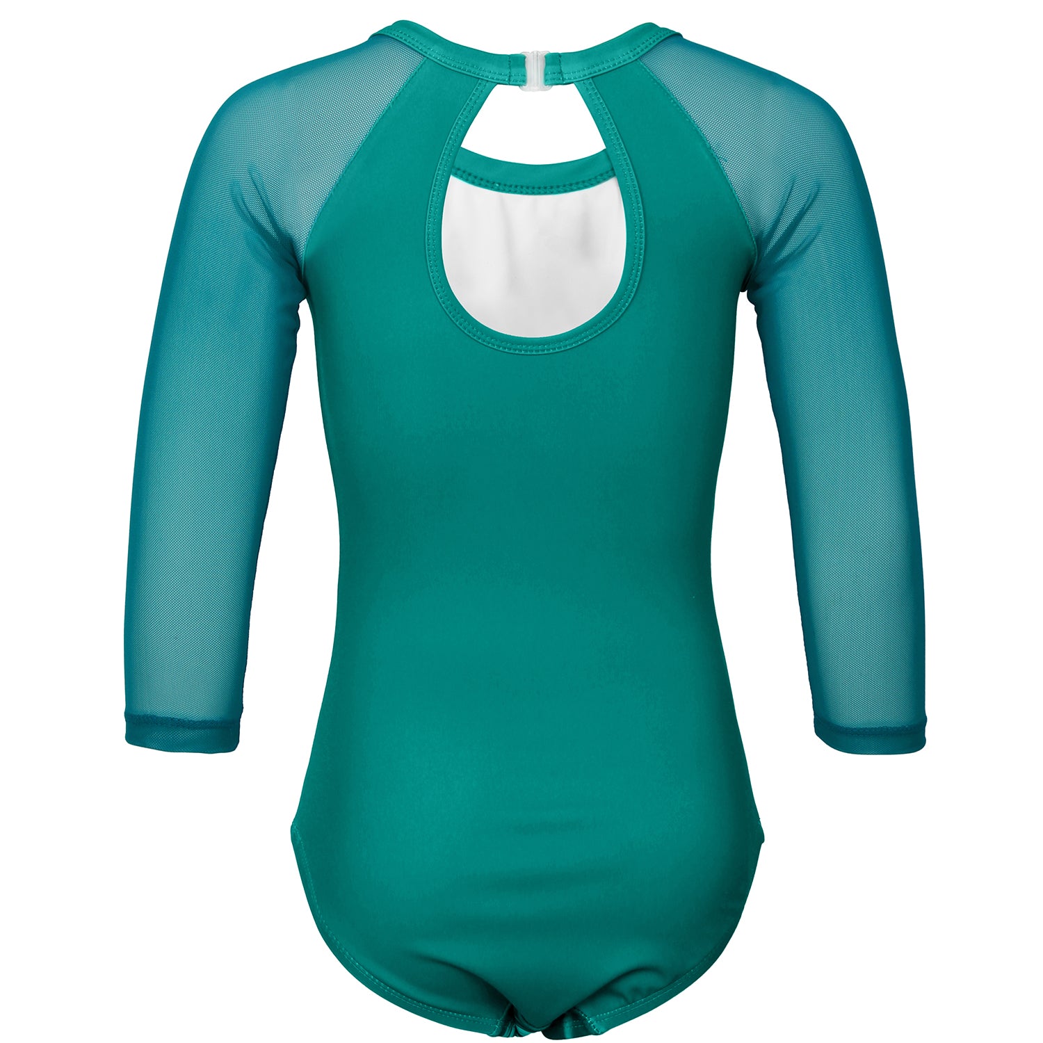 Turquoise Marble 3/4 Mesh Sleeve Gymnastics Leotard Set for Girls